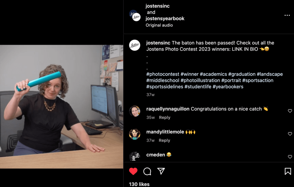 Screenshots taken on 01.11.23 from @jostensinc on Instagram. I was one of several writers contributing social captions, on-post text and social ad copy from May 2022 to June 2023 for this account.